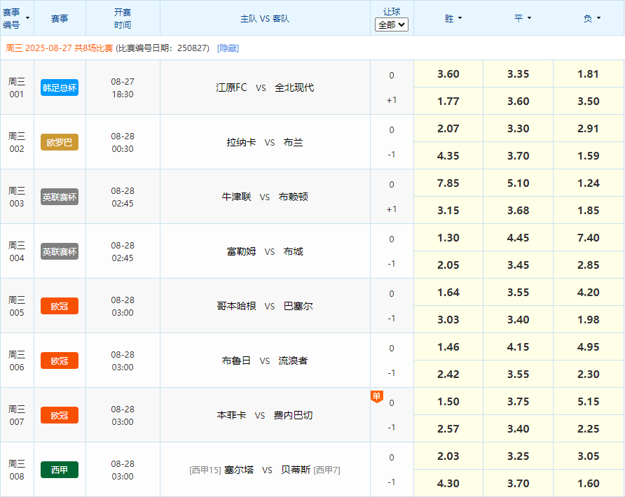 (最新赛事请以“中国竞彩网”为准)